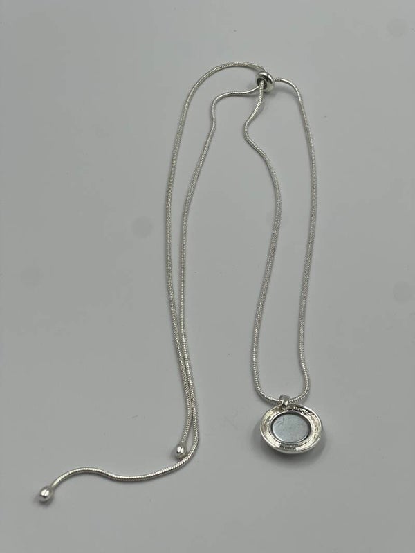 Deze ketting is verstelbaar in lengte door aan de 2 gewichtjes te trekken dwz u kunt de ketting kort voor in een decolleté of lang voor over een coltrui dragen.